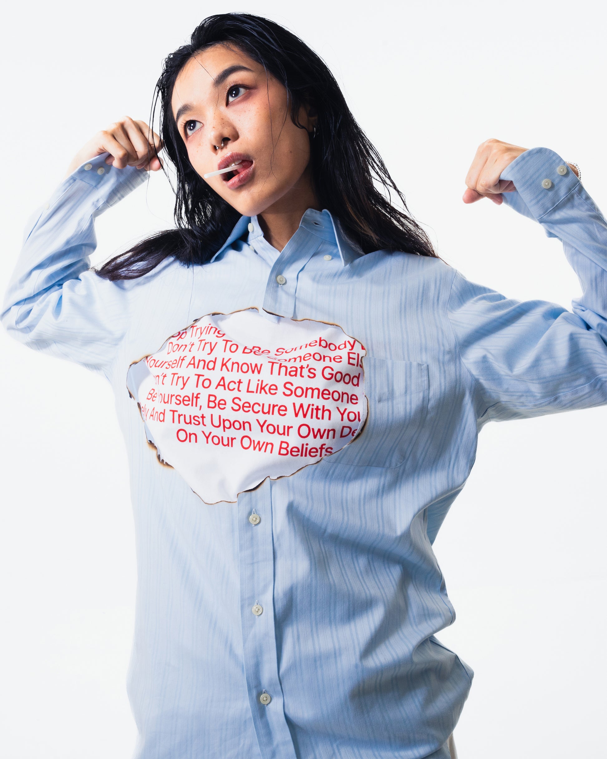 'Yourself Tee' draws inspiration from Frank Ocean's Blonde album, specifically the poignant lyrics of Be Yourself. This piece celebrates the beauty of individuality, encouraging everyone to embrace their uniqueness unapologetically. A statement to honor who you are and the journey that shapes you.